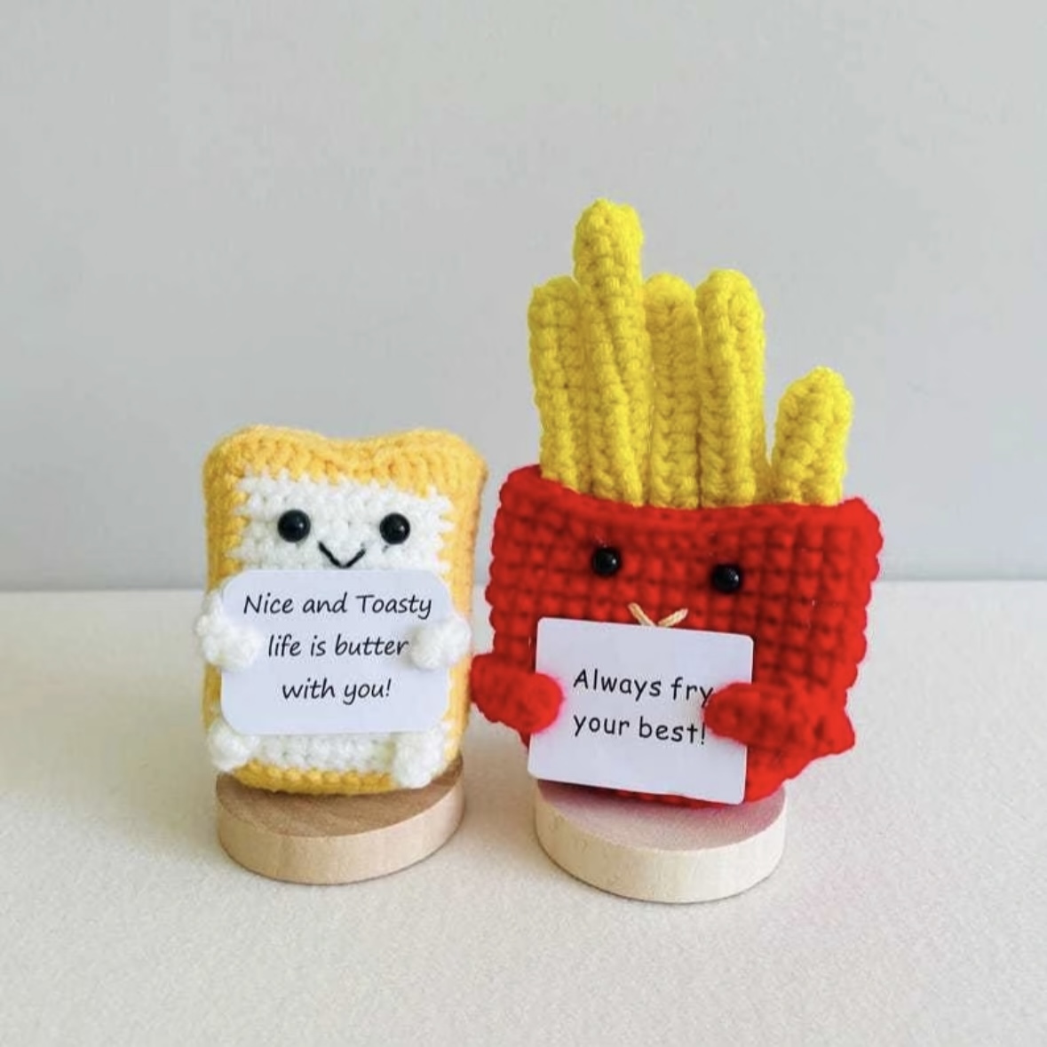 We are good at weaving invisible emotions into tangible works, so that every customization becomes a "talking gift". The emotional crochet doll series is an intimate daily companion: you can choose the basic shape, customize a palm-sized note, and write short sentences such as "I'm working hard today" and "Hug me when you're sad". These personalized crochet dolls are more than just toys—they’re custom gift that carry your heart.
