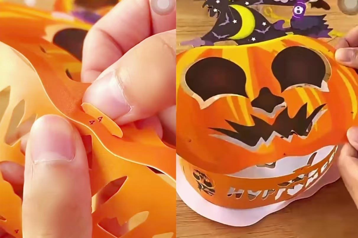 First, we need to work on the pumpkin paper pieces. Carefully cut along the edges, removing excess parts to create hollows for the mouth and eyes of the pumpkin. This step requires patience and attention to detail to ensure the hollows are perfect. Then, align the pumpkin paper pieces with the edge sealing paper according to the numbers, inserting the protruding pieces into the cut-out sections. This process may take some time and skill, but don't worry, the numbers on each piece will guide you through it.