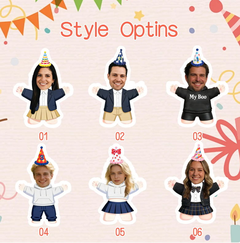 Best Photos: Front-facing or slightly angled shots with natural light (no harsh flash!). Close-ups of the face work great for head-and-shoulder dolls; full-body shots are perfect for full-size plush dolls. Choose a photo where their expression is natural—smiling, laughing, or even a soft, quiet look that feels like “them.”