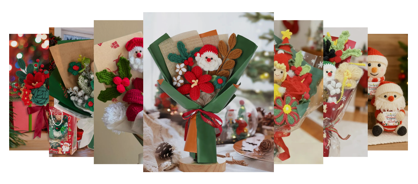 Our New Year collection is designed to embrace the holiday spirit: think glittering metallic yarns, rich reds, golds, silvers, and deep greens that evoke celebration and warmth. Whether you’re hosting a New Year’s Eve party, attending a potluck, or sending a gift to someone far away, our flower bouquet sets, plush dolls, and handmade dolls add a festive touch to any moment—from decorating a party table to brightening a lonely winter day.