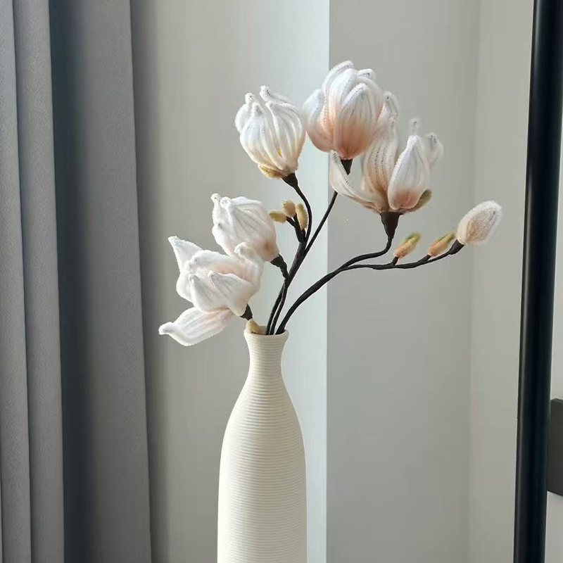 Handmade Orchids: Orchids are known for their elegance and luxury, representing "nobility" and "purity." Their unique form and rich colors make them an ideal choice for interior decoration. Whether as a gift or as a home decoration, handmade orchids add a touch of elegance and tranquility to any space. The presence of orchids not only enhances the aesthetics of any space but also embodies the pursuit and quality of life, symbolizing a yearning for a better life.