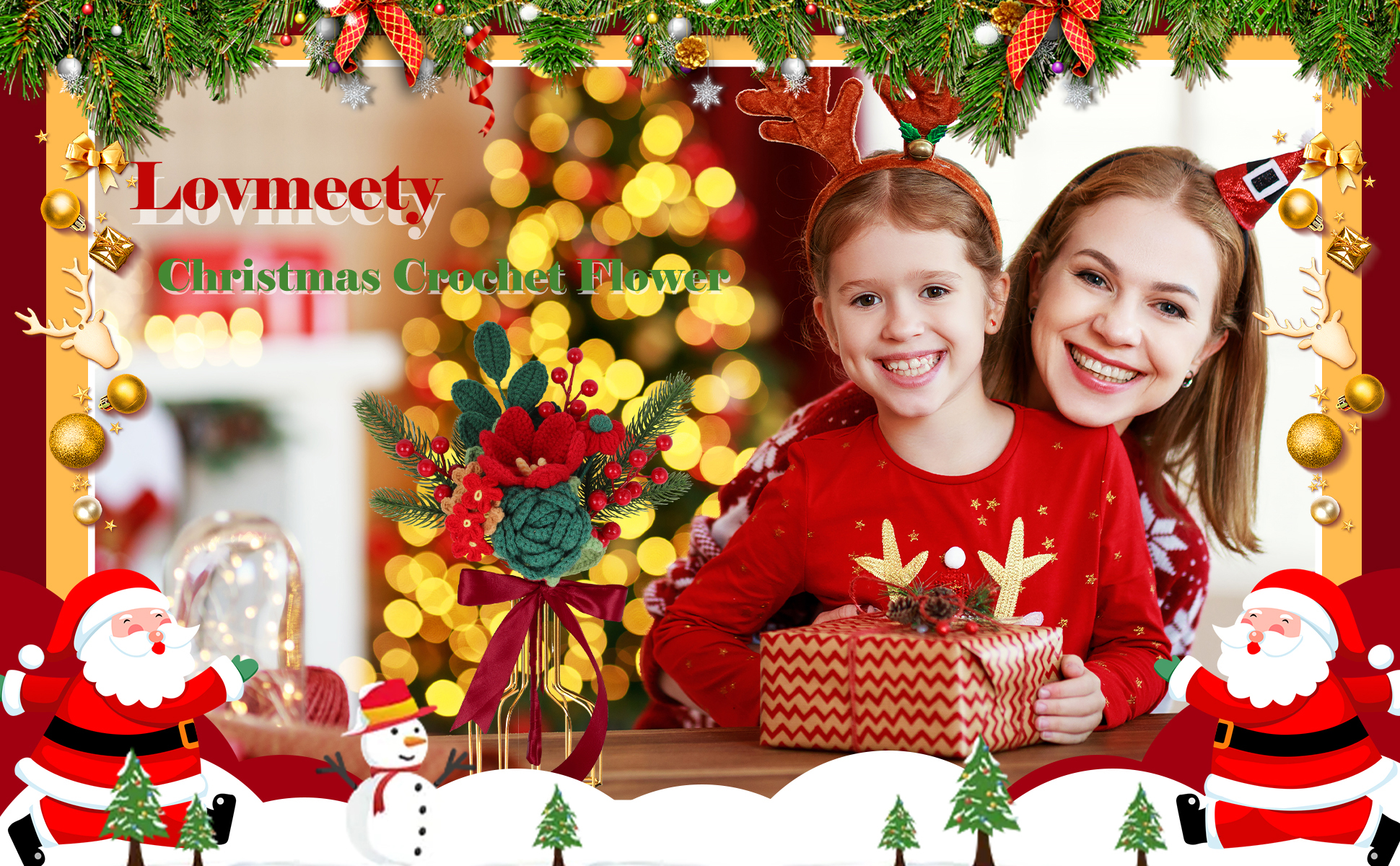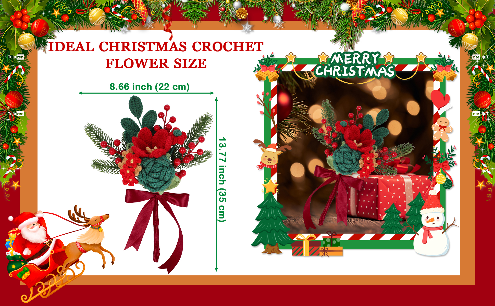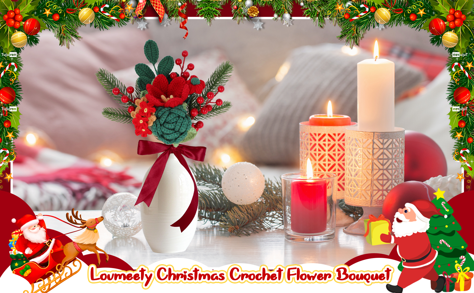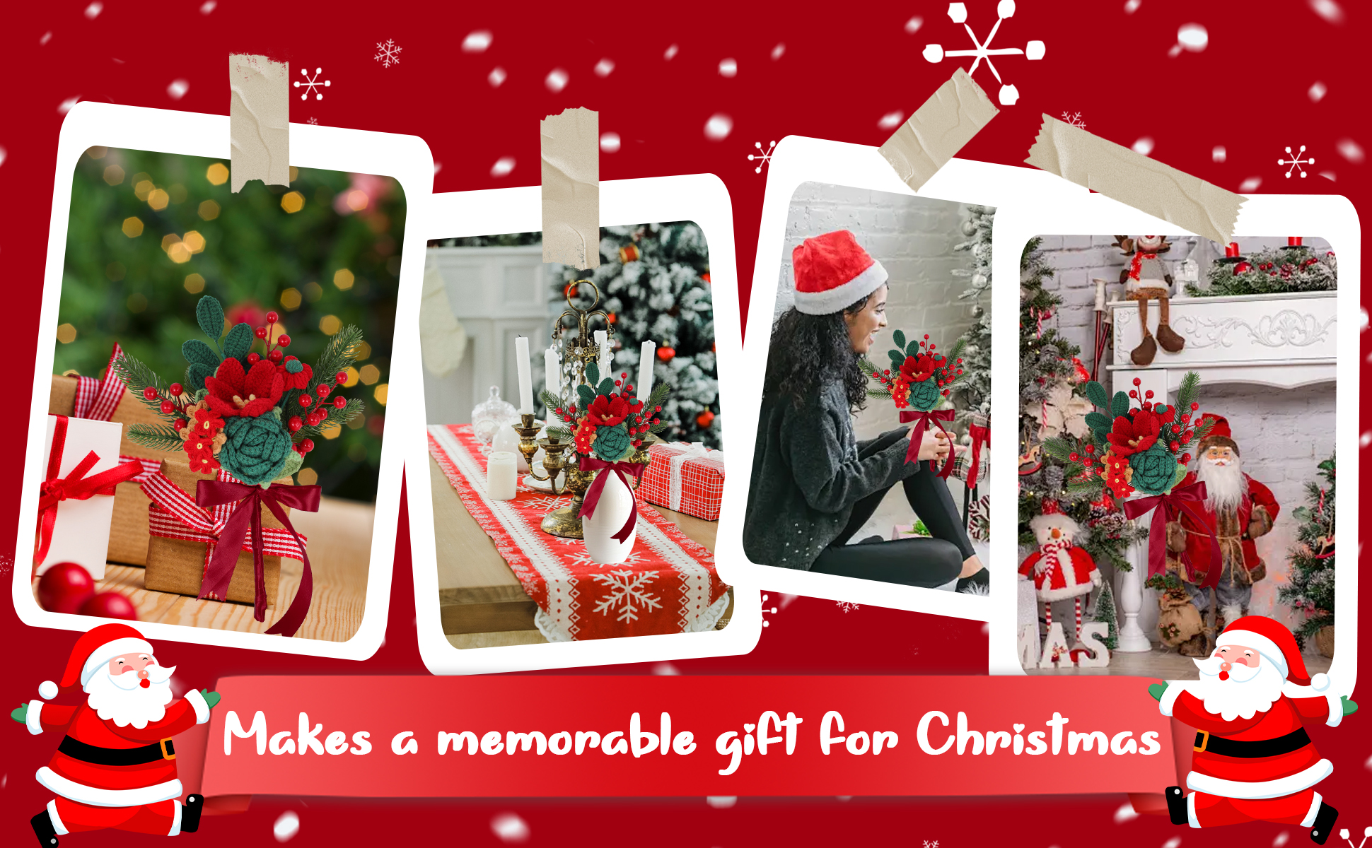 Handmade Crochet Flower Christmas Crochet Bouquet Completed Knitted Flower Bouquet Christmas Gift