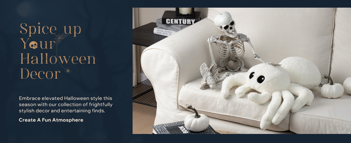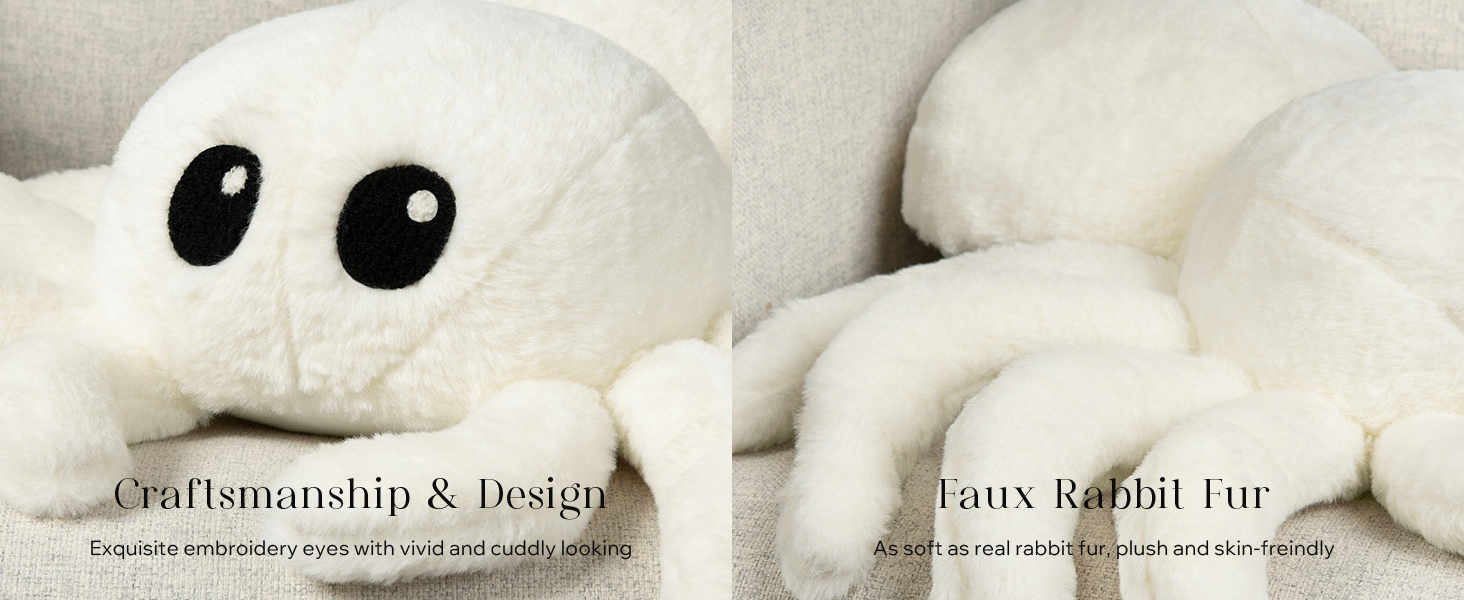 Happy Halloween Spider Shaped Throw Pillow, Faux Fur Fluffy Tarantula Shaped Halloween Cushion Pillow, White, 9 x 16 inch